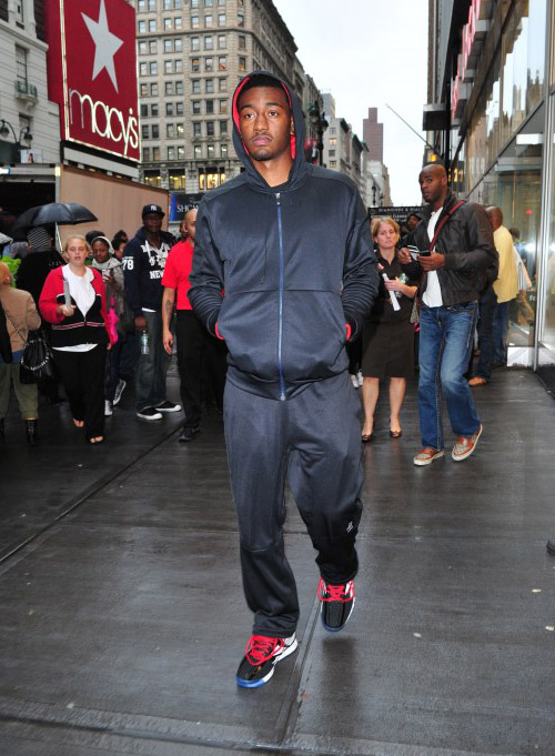Jim Jones in the Nike Air Maestro Flight Medium Grey/Solar Red |